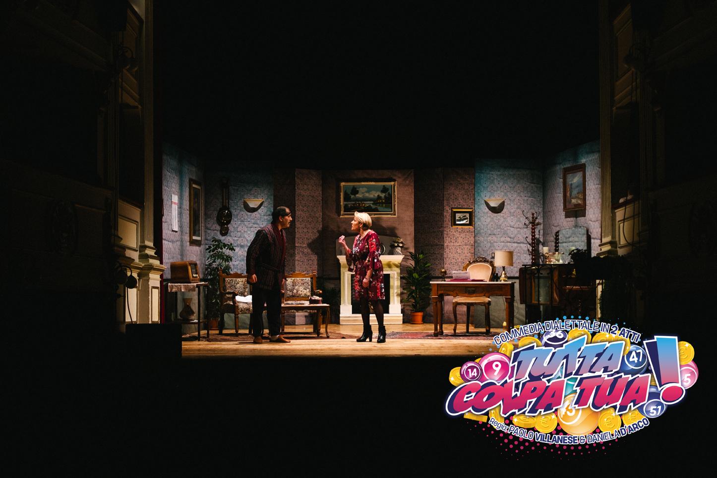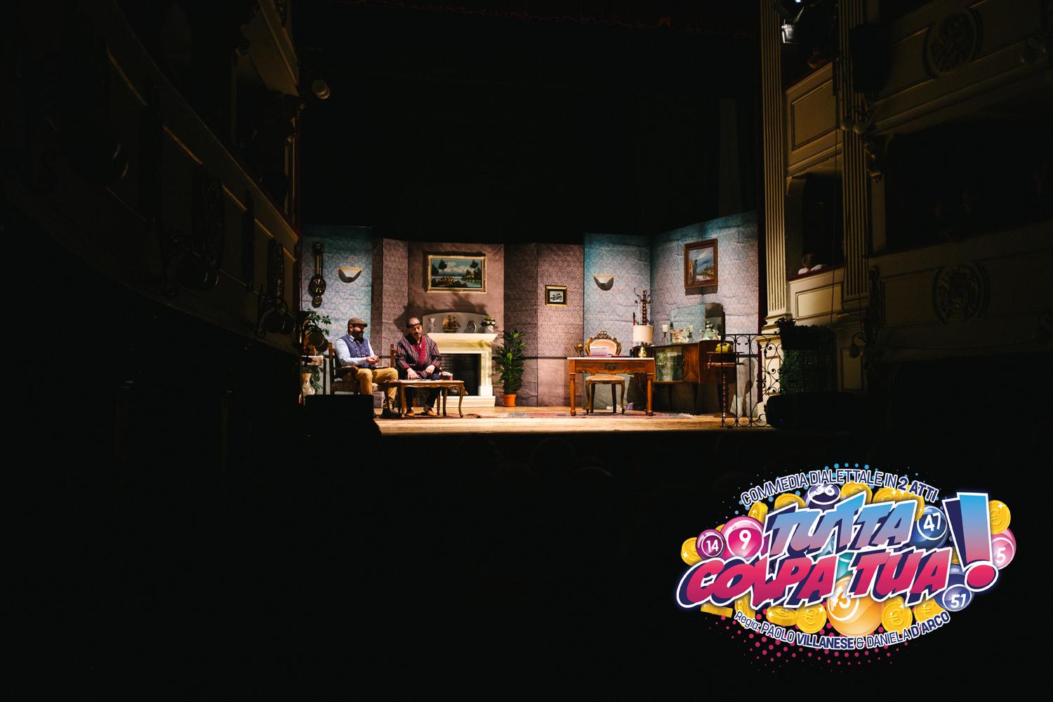 “Tutta colpa tua” è una divertente commedia dialettale in due atti che affronta con sferzante ironia il tema dell’attaccamento eccessivo al denaro e le sue paradossali conseguenze. Prendendo spunto da due illustri personaggi letterari, Arpagone di Molière e papà Grandet di Balzac, dai proverbi e dai miti popolari che ruotano attorno alla figura dell’‘avaro’, la commedia si propone di delineare un quadro d’insieme fresco e contemporaneo nel quale il vecchio stereotipo dell’avarizia viene sostituito con un altro, più moderno per l’appunto, che oggi si ritrova a fare i conti con la tecnologia e l’ecosostenibilità.